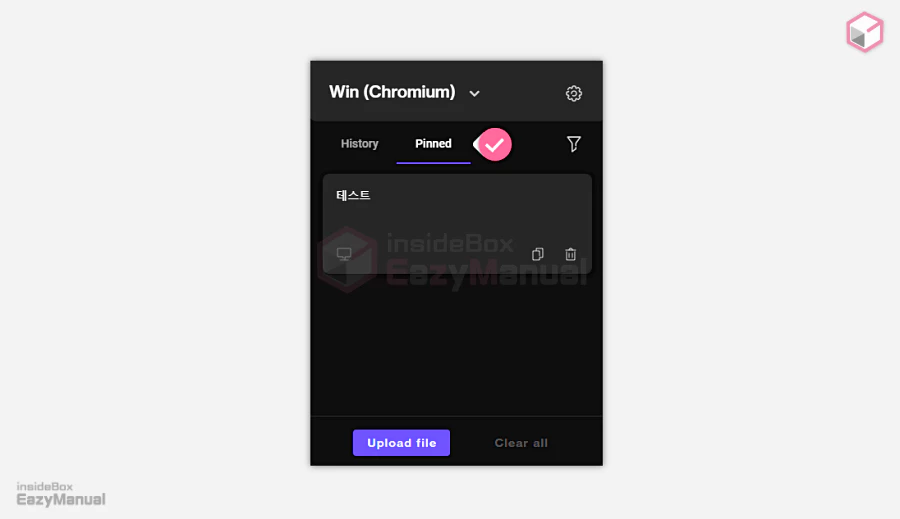 저장 하고 싶은 내용을 클립보드에서 Pin 아이콘 으로 고정 할 수 있습니다. 그리고 고정 해제 전 까지 그대로 유지가 되기 때문에 손쉽게 확인 가능 합니다.
