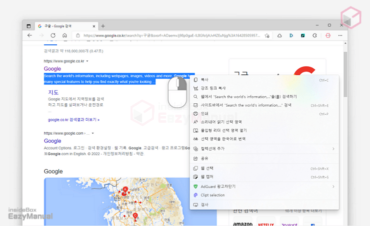 - 마우스 오른쪽 단추를 클릭 하고 나면 열리는 메뉴 [본문으로]