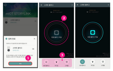 아래 버튼 3개 (③) 가 보여지는데전원 플러그 버튼을 누르면 전원을 원격으로 제어 할수 있습니다.