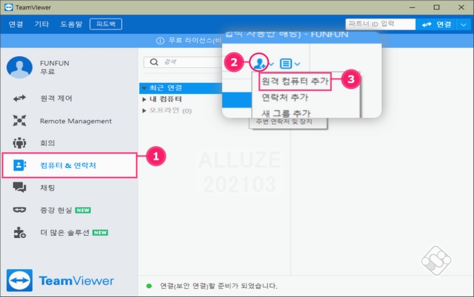 1.3.2. 팀뷰어 계정에 컴퓨터 & 연락처 등록하기