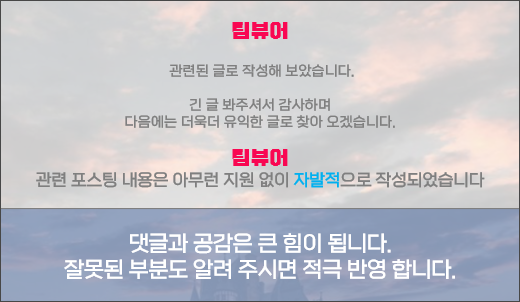 글이 도움이 되셨다면 공감과 댓글이 큰힘이 됩니다.