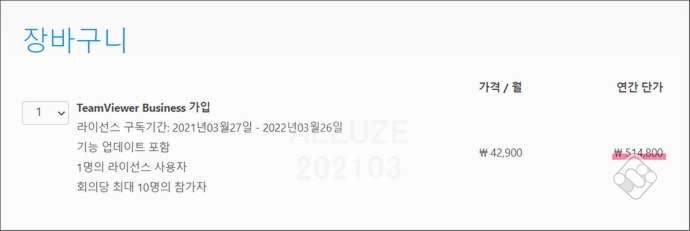 단일 사용자 의 경우 42,900원 이며 연간 비용을 최초에 청구하게 됩니다.