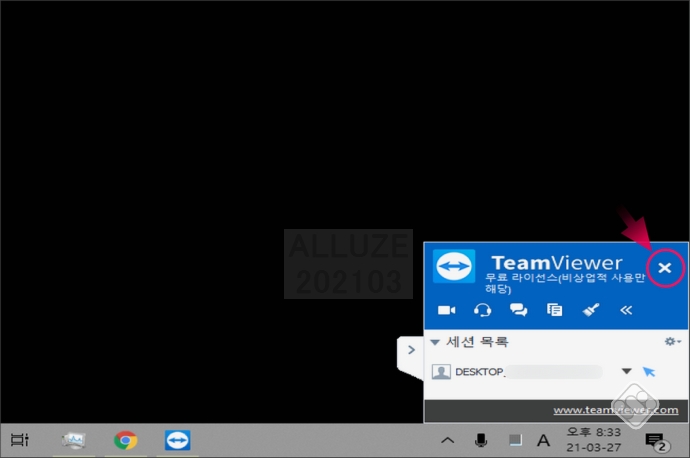우측 하단 제어 패널의 X 아이콘을 클릭하면 원격이 종료가 됩니다.