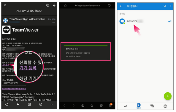 이메일 전문입니다. 기기 등록 링크를 클릭해주면 장치 추가 성공 이라고 멘트가 보입니다.