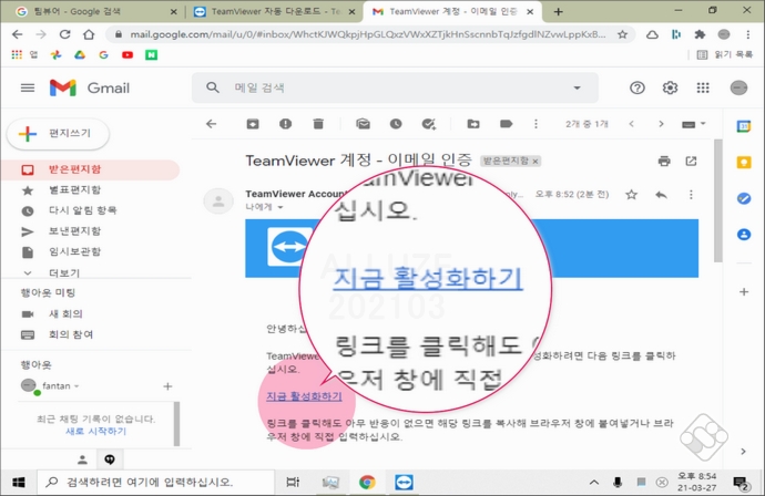 메일에서 지금 활성화하기 를 클릭 해주어야 정상적으로 가입이 완료 됩니다.